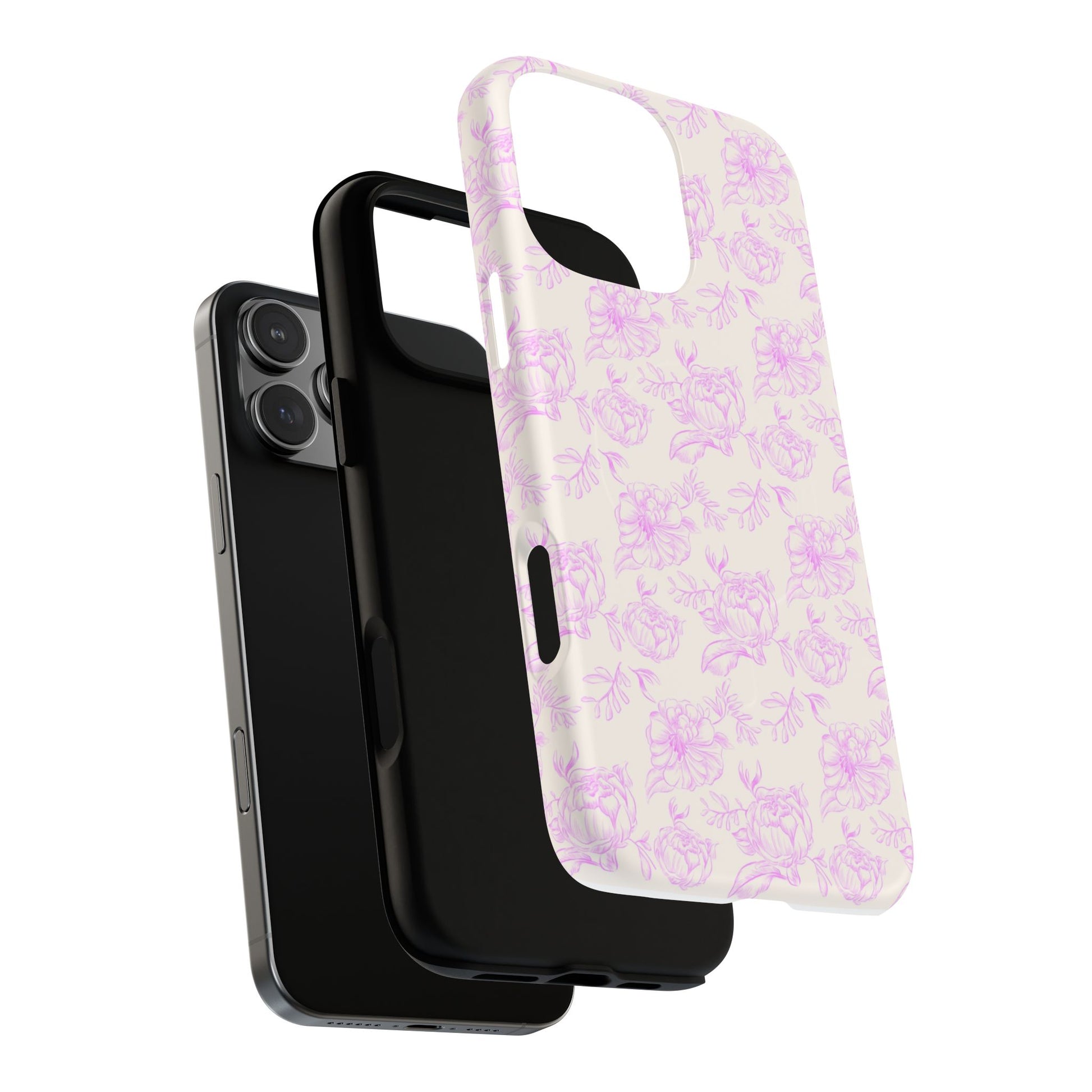A stylish and durable phone case featuring pink and white handmade floral design. This tough phone case will protect your phone and make a perfect gift for her. It is cute, aesthetic, and pinteresty, suitable for birthday gifts and gifts for girls.