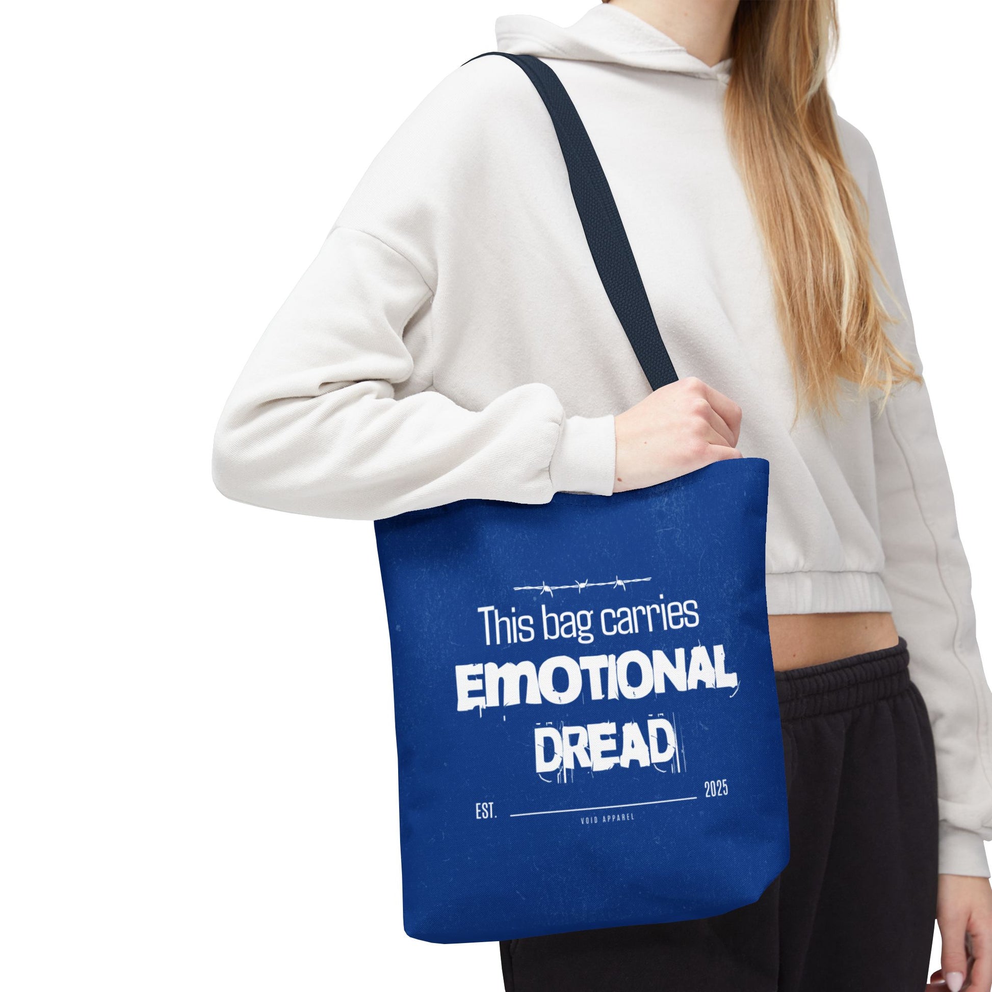 “This Bag Carries Emotional Dread” Blue Tote Bag | Grunge Aesthetic Tote for Everyday Use